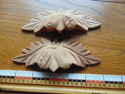 | Pair of vintage(70's) hand carved Walnut Victorian style Fruit pulls. Pulls are hand carved from walnut wood and exact color of finish may differ from pictures. They have never been used. They have small points marked where they were to be attached. No stain. No lacquer, varnish, or oils have been applied to these. They came out of a refinishers estate. They measure 5.5" wide by 2.25" tall. This set includes 2 pulls that mirror each other in design(a left and a right) This auction is for one set(2) Other hardware from the same estate listed or to be listed. Payment by Paypal within 2 days of close. Thanks for looking. I only ship to the continental US. |