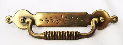 | Set of 5 Vintage Reproduction Antiqued Brass Pulls Bails Knobs Chippendale Style for Dressers. Cabinet or Doors. They measure 4 1/4" long x 2 1/8" wide with screw holes 2 1/2" They are in mint condition! and have never been used. Should you have any questions or need more photos. Please email me. I want you to be pleased with your purchase. We combine shipping on multiple purchases! Please do not expect vintage. Antique or used items to be in perfect condition and ask questions before bidding as all items are sold as is. Please ask questions before bidding. Many of the items I sell are estate finds. Most cleaning is left to the buyer as some items lose value without patina, etc PAYMENT: Payment is expected within three(3) days after the winning bid has been determined. Item(s) will be shipped the business day following the ... more receipt of payment. REFUNDS: If the physical condition of the item is not as described returns will be accepted. Request for return must be reported within 7 days of delivery. The return must be postmarked within 14 days and arrive in it's original condition. Postage is not refundable and return postage is to be paid by the customer. By bidding. You verify that you agree to the terms and conditions. SHIPPING: WE CHARGE ACTUAL SHIPPING COST! Shipping costs posted are an estimate as we do not package items until they sell. Of course. We attempt to estimate as close to actual as possible given the information available. Invoice will be sent after the auction. If you find yourself as a winner of more than one of our auctions, we are always happy to combine shipping costs. Please remember that some items pack together much nicer than others. Once the item is received; should there be a problem, Please contact me and let me know. INSURANCE: Unless the high bidder advises us otherwise. Insurance will be included in the shipping and handling cost of every fragile item. Given the treatment of some of the package, we consider most of our items as"fragile" If you receive a damaged or br |